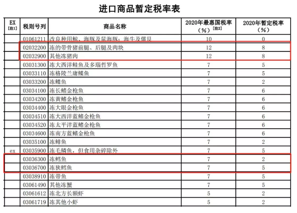 值得注意的是,进口猪肉的暂定税率为8%,而进口量较大的冻鳕鱼和冻狭鳕鱼的暂定税率分别为2%和5%,这三项比对应的最惠国税率低2%~5%。