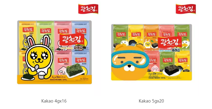 (株)广川海苔通过HACCP、ISO22000等彻底的品质管理标准,致力于生产出更卫生、更安全的食品。主打的16款产品中有6款印有KAKAO动漫图案的新品,KAKAO是韩国现在最火的动漫,别具一格的卡哇伊包装吸引更多人的关注和购买。此外,产品已在全国各地的商超、便利店、及批发市场销售,由于品质可靠,健康安全,得到广大消费者的认可。